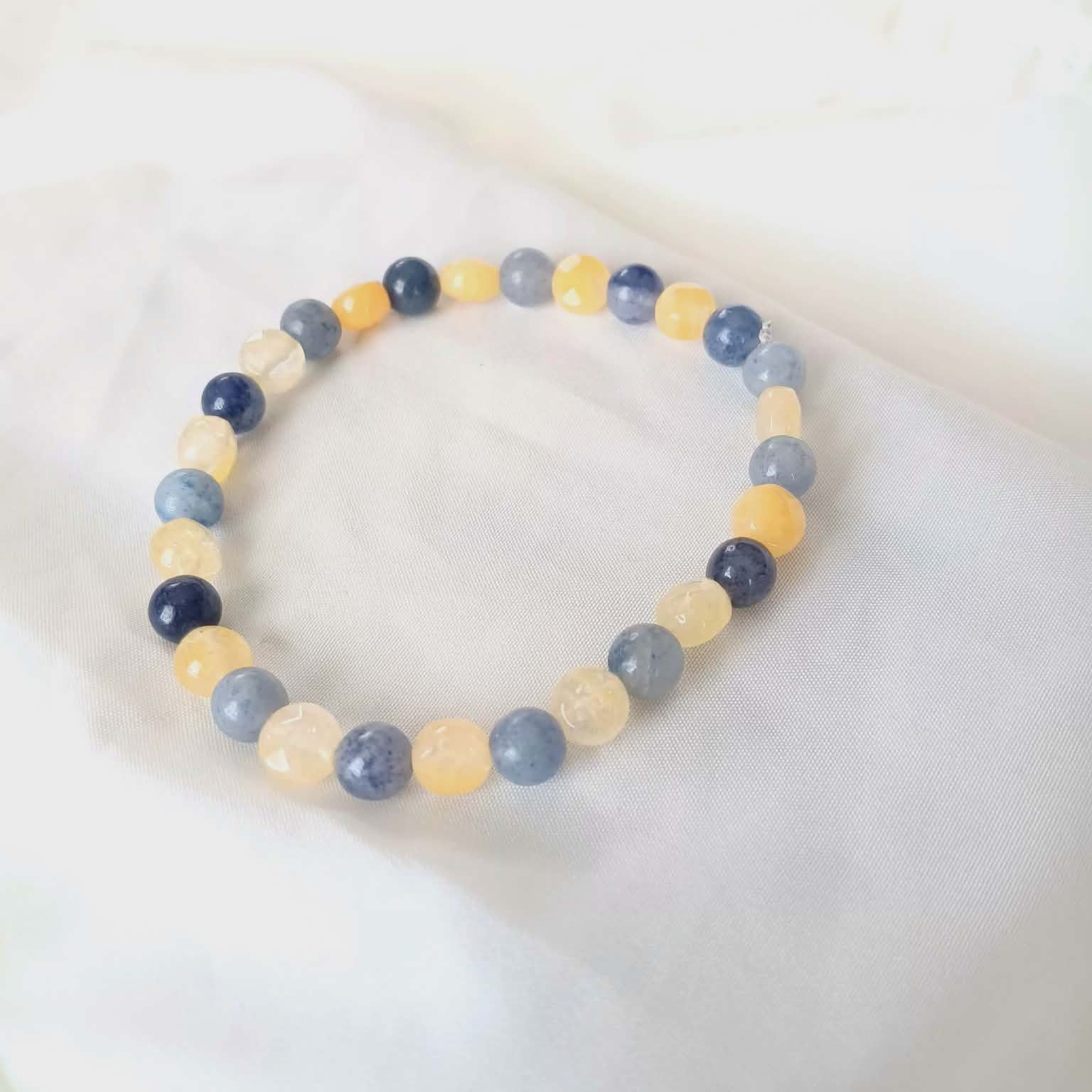The Blue beads are in various shades, inspired by the the high's and lows in life. The yellow beads signify how God can be our glimmer or glow of hope during hard times, and to keep going no matter what.