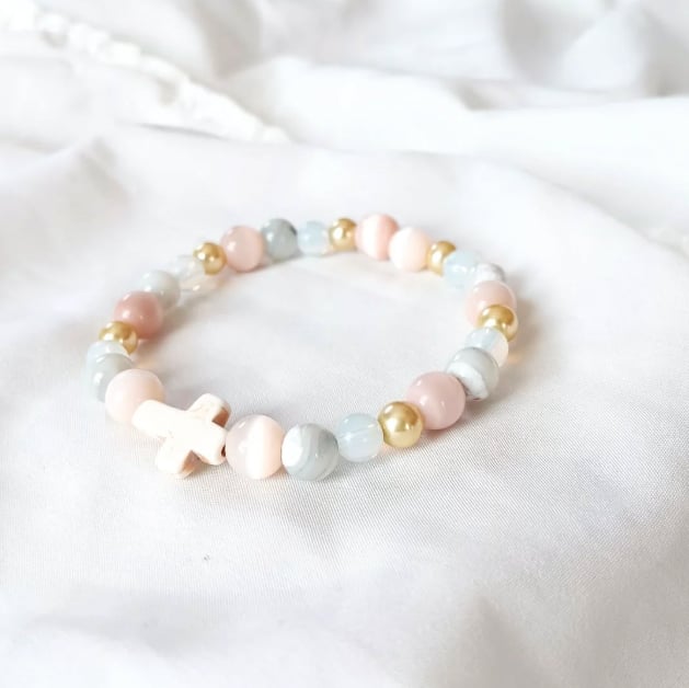This bracelet is inspired by Moriah's song "Nice Life" featuring gray mother of pearl, pink cat eye, and opalite this bracelet is as light and airy as the songs vibes! Fits a wrist size of 18 cm but can be adjusted to fit your wrist size! Just add measurements to your order notes!